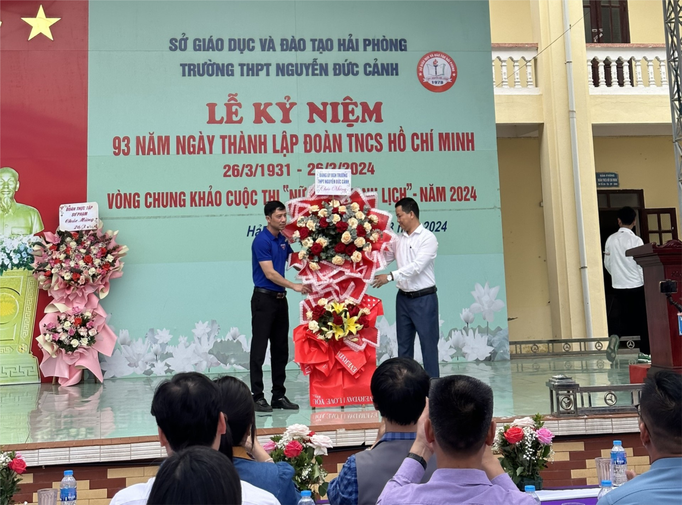 Nhân lễ kỉ niệm 93 năm ngày thành lập Đoàn TNCS Hồ Chí Minh, Ban lãnh đạo nhà trường cùng 31 bí thư đại diện cho các tập thể lớp đã làm lễ dâng hương tưởng niệm đồng chí Nguyễn Đức Cảnh và những đóng góp của đồng chí cho sự nghiệp Cách mạng của dân tộc. Tiếp đó, thầy Trịnh Văn Kiên - Bí thư Đảng bộ - Hiệu trưởng nhà trường đã phát biểu động viên và tặng hoa chúc mừng Đoàn trường đồng thời khai mạc cuộc thi "Nữ sinh thanh lịch" trường THPT Nguyễn Đức Cảnh nhằm tôn vinh vẻ đẹp duyên dáng cùng trí tuệ của nữ sinh trường Nguyễn Đức Cảnh.