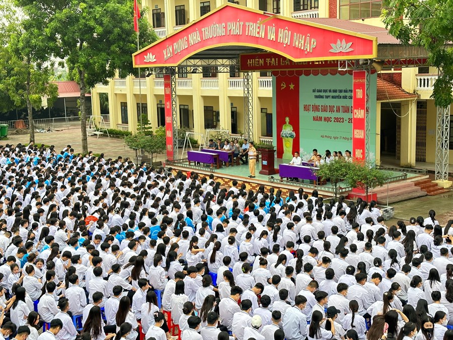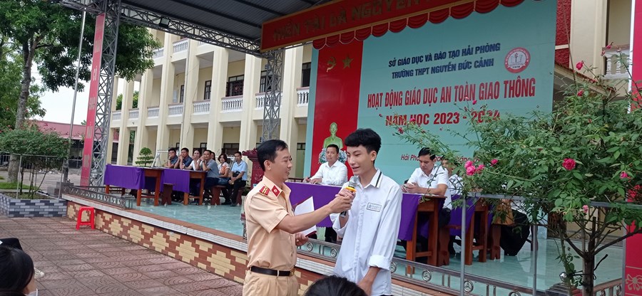 Sáng ngày 11/9/2023 Trường THPT Nguyễn Đức Cảnh phối hơp với công an huyện Kiến Thuỵ tổ chức chương trinh tuyên truyền “An toàn giao thông cho nụ cười ngày mai”. Chương trình có sự tham gia của Thiếu tá Vũ Thế Hưng đội phó Đội cảnh sát giao thông huyện Kiến Thuỵ. Tại chương trình đồng chí chia sẻ: