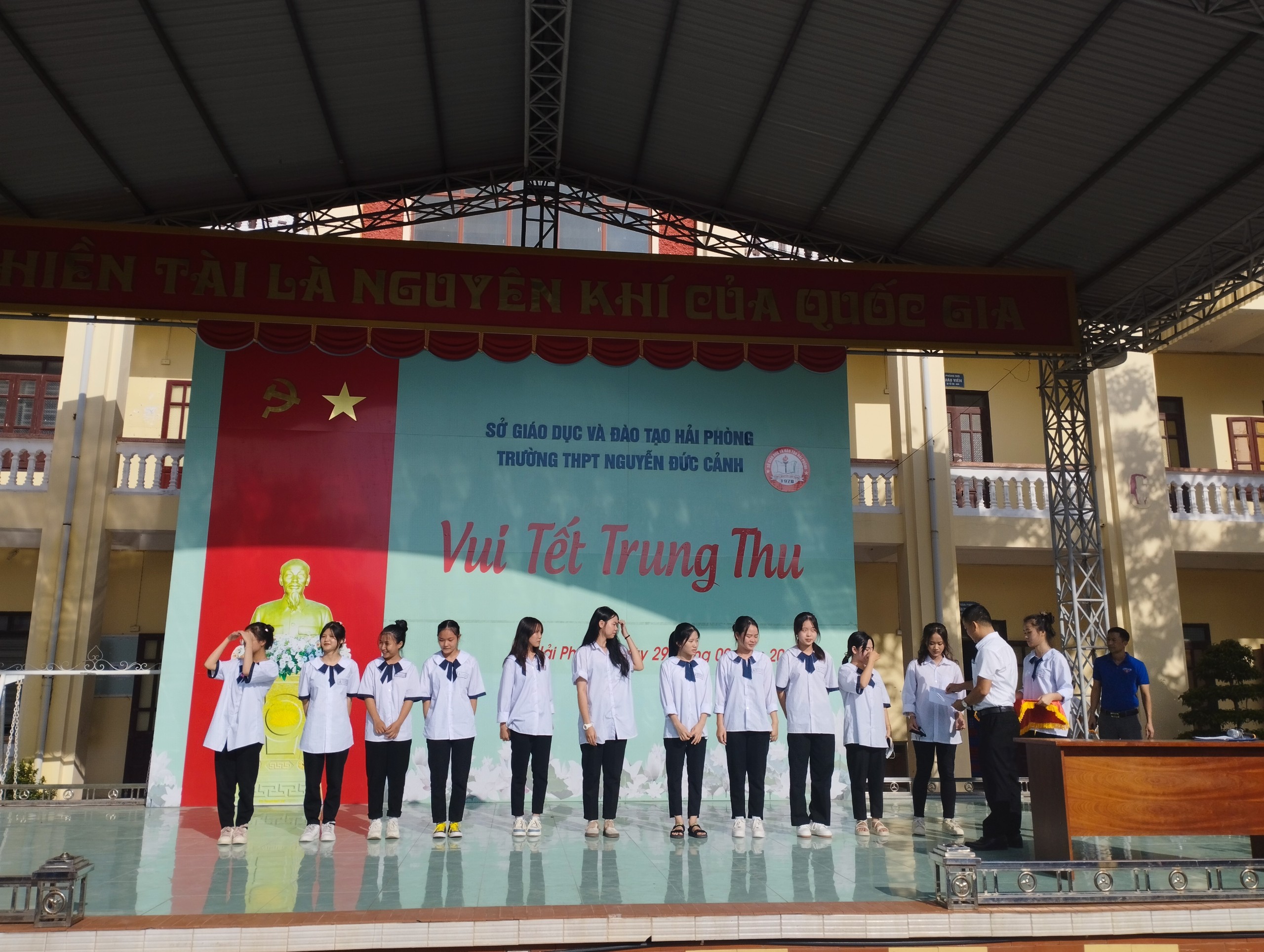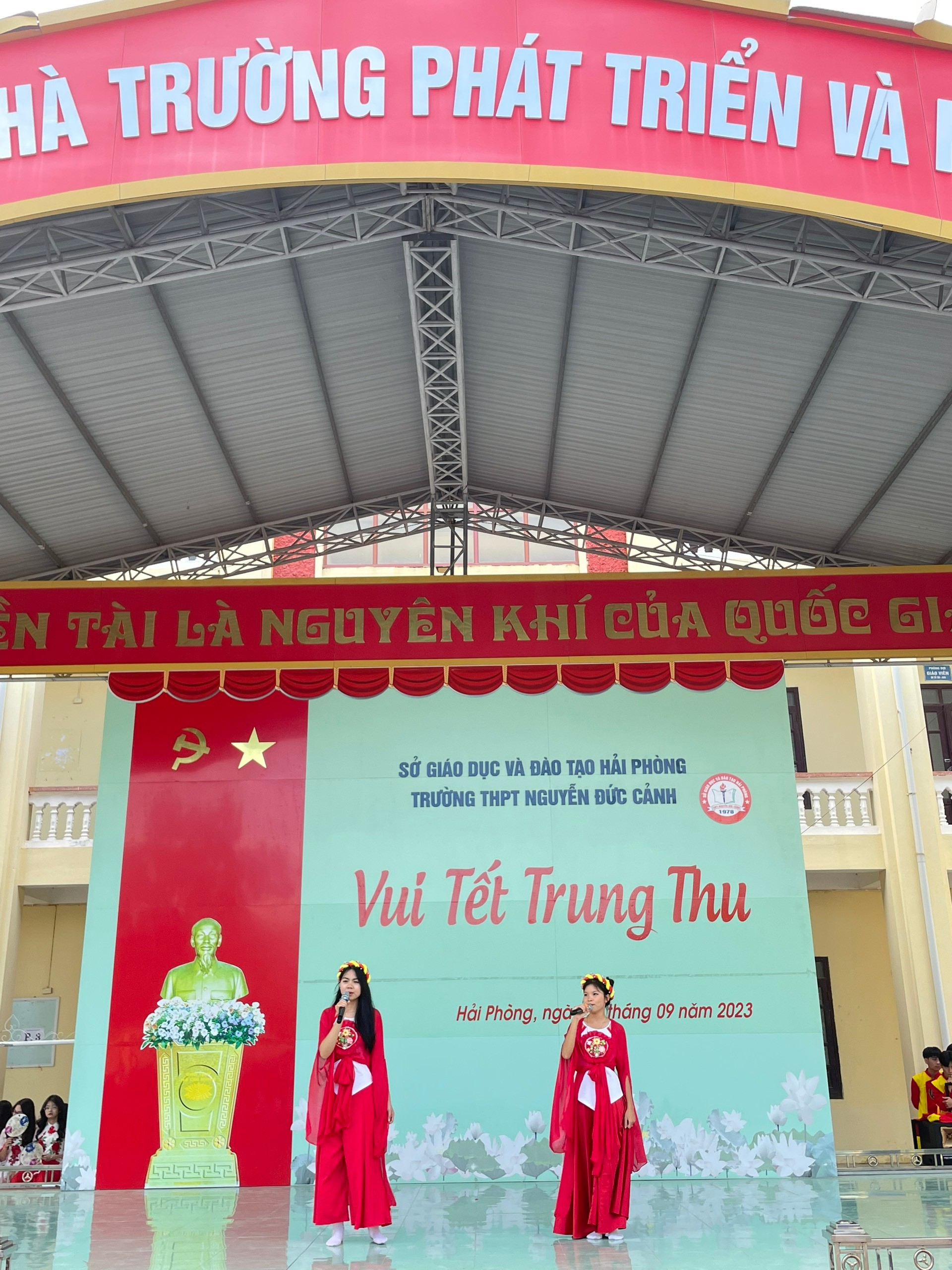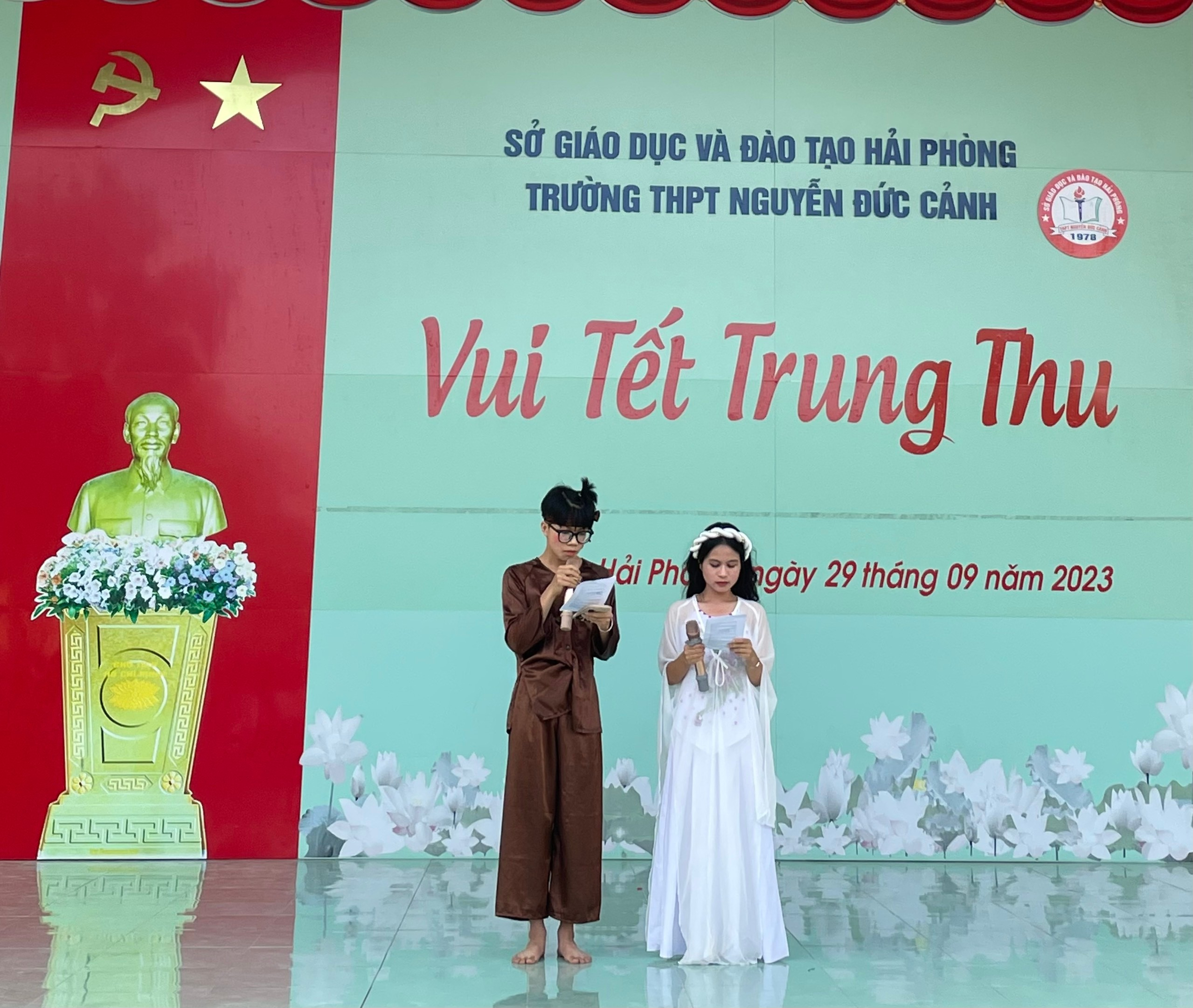 Hoà chung với không khí tưng bừng phấn khởi của thiếu nhi cả nước chào đón Tết Trung thu, ngày 29/09/2023 trường THPT Nguyễn Đức Cảnh tổ chức chương trình vui Tết Trung thu năm 2023.Trường THPT Nguyễn Đức Cảnh đã tổ chức cho học sinh toàn trường một ngày hội “ Vui Tết Trung thu” với nhiều hoạt động vui chơi hấp dẫn, bổ ích, giàu tính truyền thống. Đây là cơ hội để các em thêm đoàn kết, cùng nhau chia sẻ cảm xúc, giúp các em hiểu thêm về những phong tục lễ tết. Tết Trung Thu là một ngày có ý nghĩa vô cùng đặc biệt với người dân Việt Nam. Đến ngày hội trăng rằm hàng năm, các em háo hức được rước đèn, được phá cỗ, được nghe lại truyền thuyết về Chị Hằng và Chú Cuội trên cung trăng.
