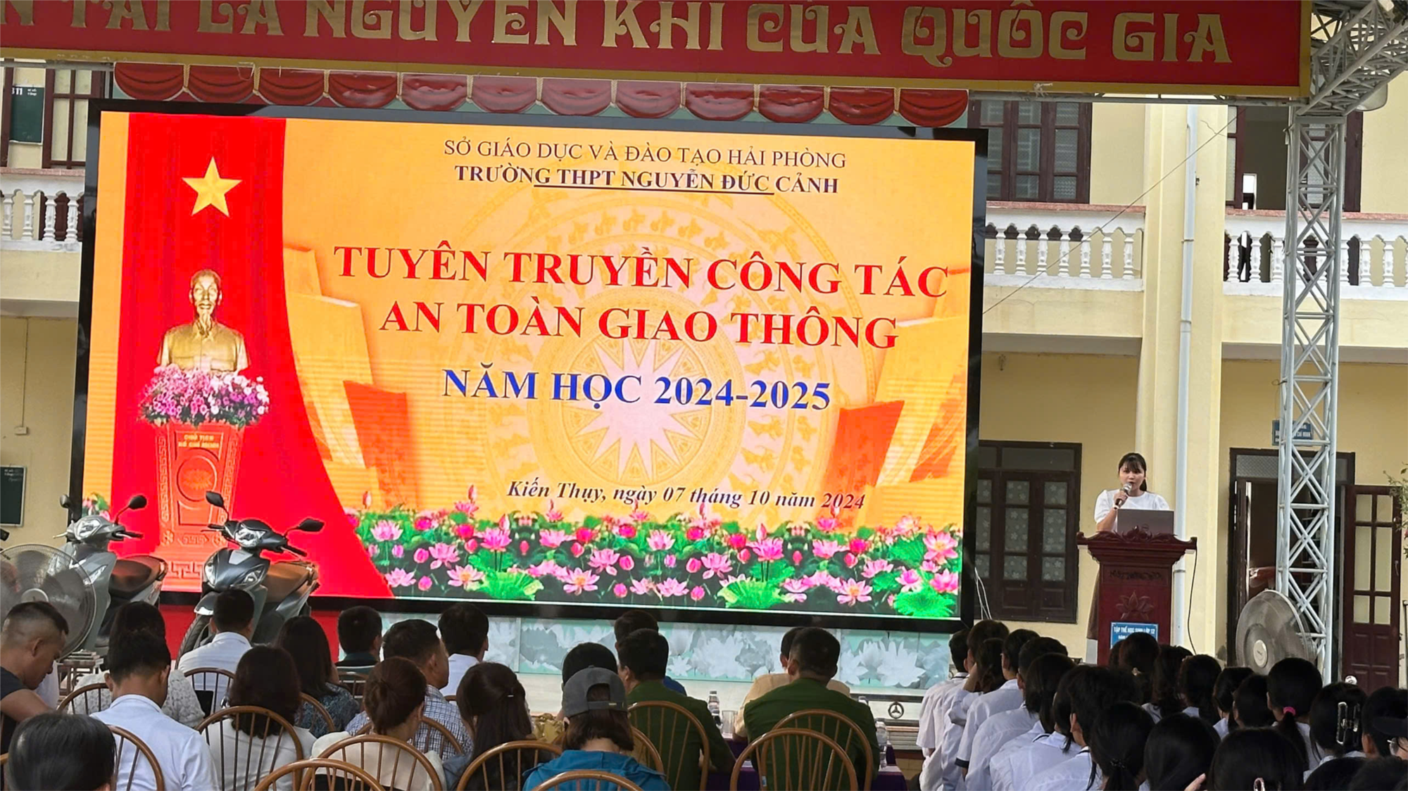 Ngày 7/10/2024, Trường THPT Nguyễn Đức Cảnh kết hợp cùng Đội Cảnh sát giao thông Huyện Kiến Thụy tổ chức tuyên truyền, giáo dục bảo đảm trật tự an toàn giao thông trong nhà trường cho học sinh, năm học 2024-2025. Dự chương trình có đại diện lãnh đạo Huyện đoàn Kiến Thụy, Đội Cảnh sát giao thông, công an các xã Tú Sơn, Đoàn Xá, Đại Hợp, Ban đại diện cha mẹ học sinh và học sinh nhà trường.